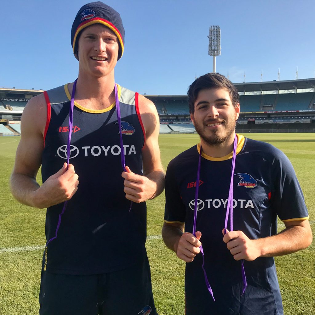 Adelaide Crows players will wear purple laces in their SANFL showdown with Port Adelaide at Kadina Oval this Sunday, raising awareness of the importance of mental health research. Thanks to the York Peninsula Country Times and Crows players Alex Keath and Ben Jarman for helping to spread the message. Click to read the article from […]