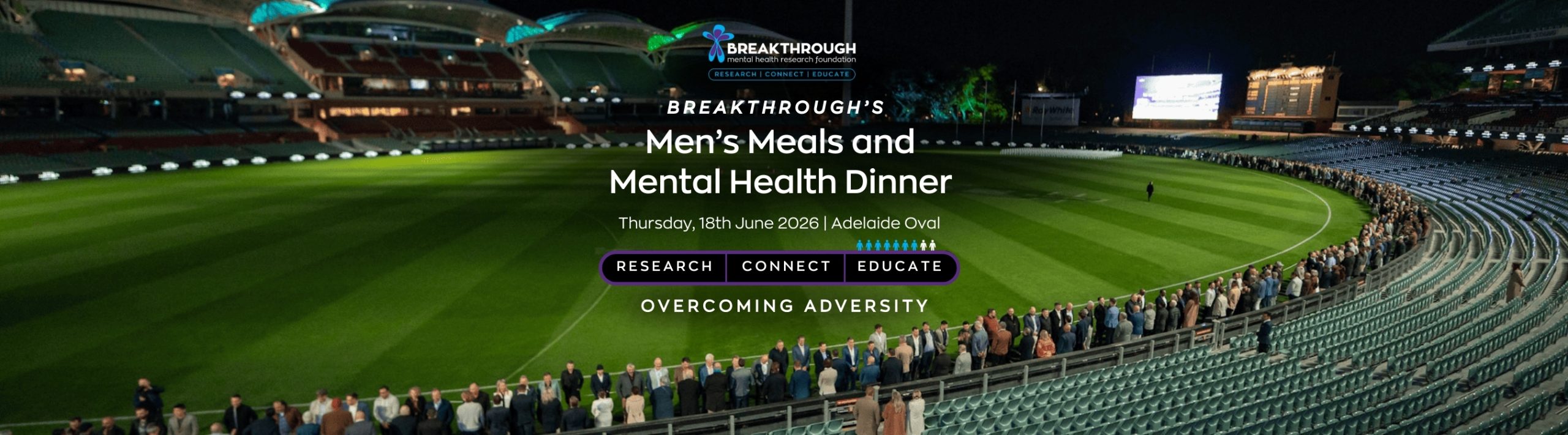 Tickets are now available for Breakthrough’s Men’s Meals and Mental Health Dinner, on Thursday, 18th June 2026, from 6pm to 11pm at The Adelaide Oval. Last year sold out in 6 days, don’t miss out this year!