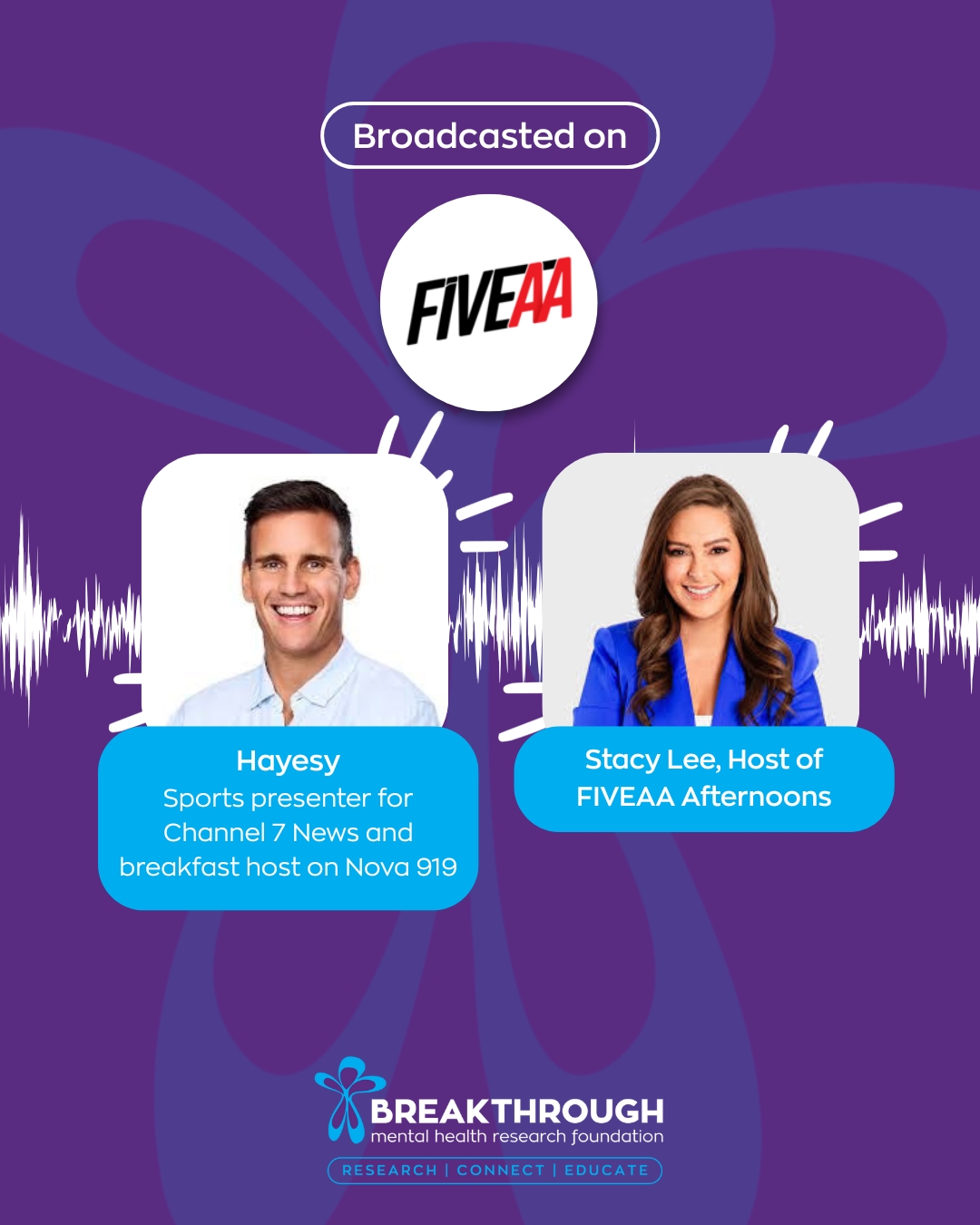 Listen in with Hayesy, sports presenter for Channel 7 News and breakfast host on Nova 919, talking to Stacy Lee on FiveAA talk about the brand new Breakthrough Ambassador Program.